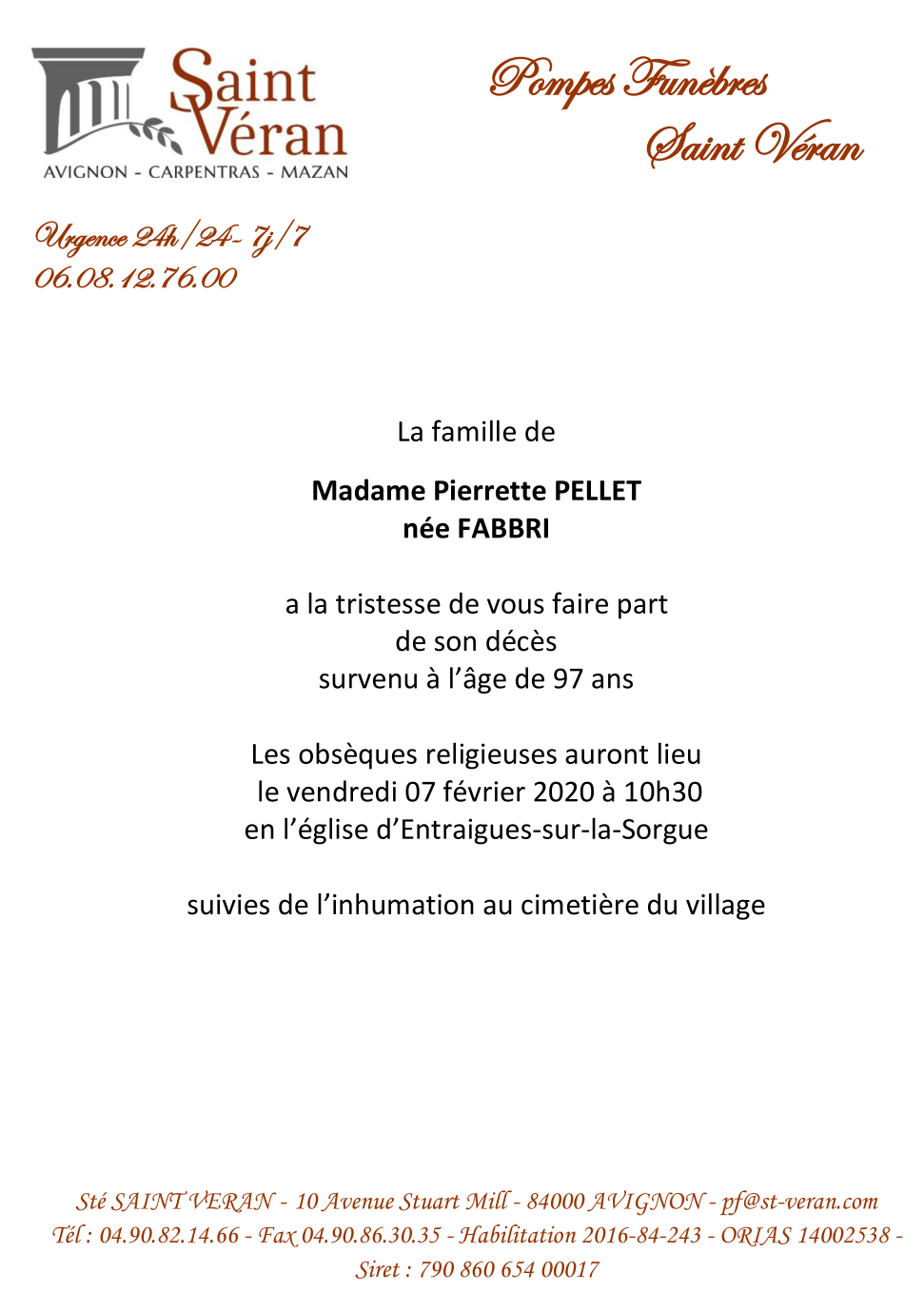 Décédée à Avignon (84000, France) le mardi 4 février 2020 à l'âge de 97 ans
