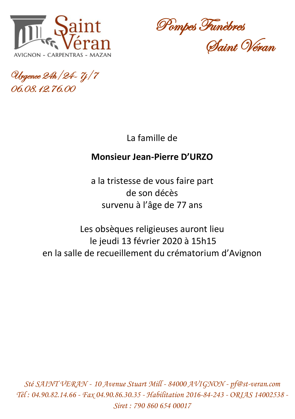 Décédé à Avignon (84000, France) le vendredi 7 février 2020 à l'âge de 77 ans