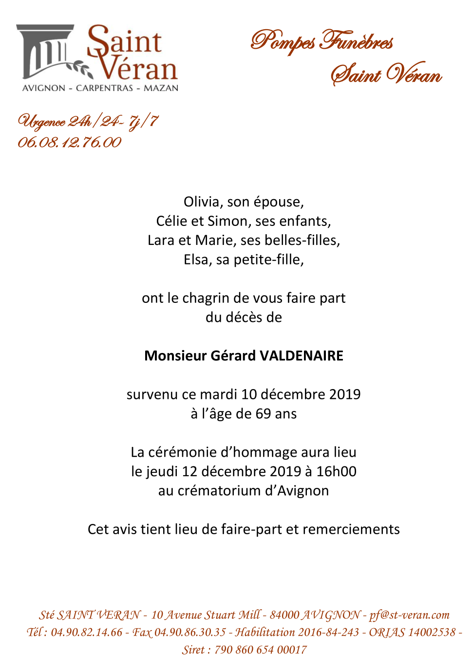 Décédé à Marseille (13005, France) le mardi 10 décembre 2019 à l'âge de 69 ans