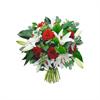 Photo non contractuelle | Bouquet de lys blancs et roses rouges Bouquet de lys blancs et de roses rouges fleurs fraîches